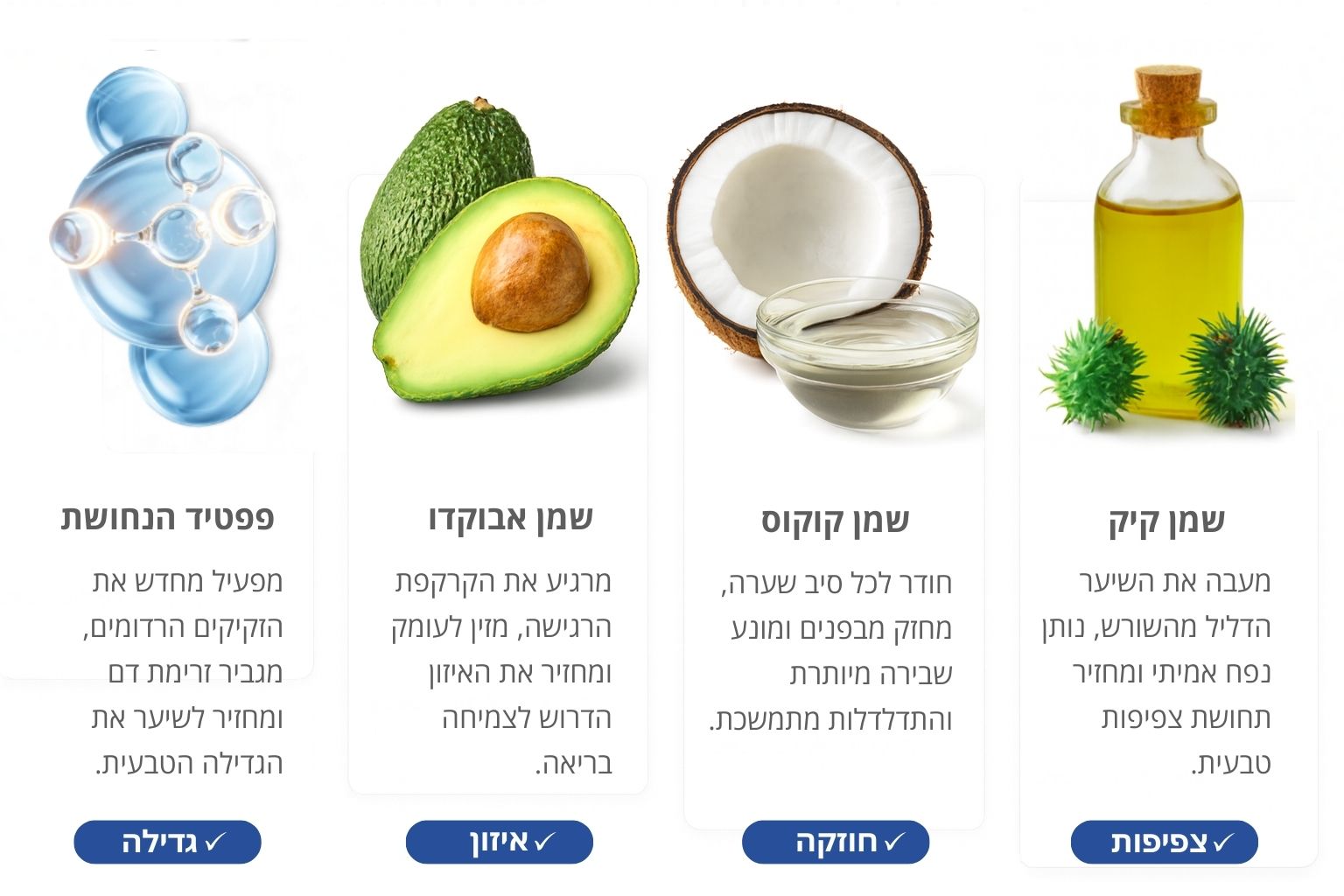 הנוסחא הייחודית שלנו, מראשונה מסוגה בעולם נבנתה כדי להפסיק את הנשירה מהשורש, לדאוג לקרקפת שלך, ולהצמיח שיער חדש במהירות שיא: