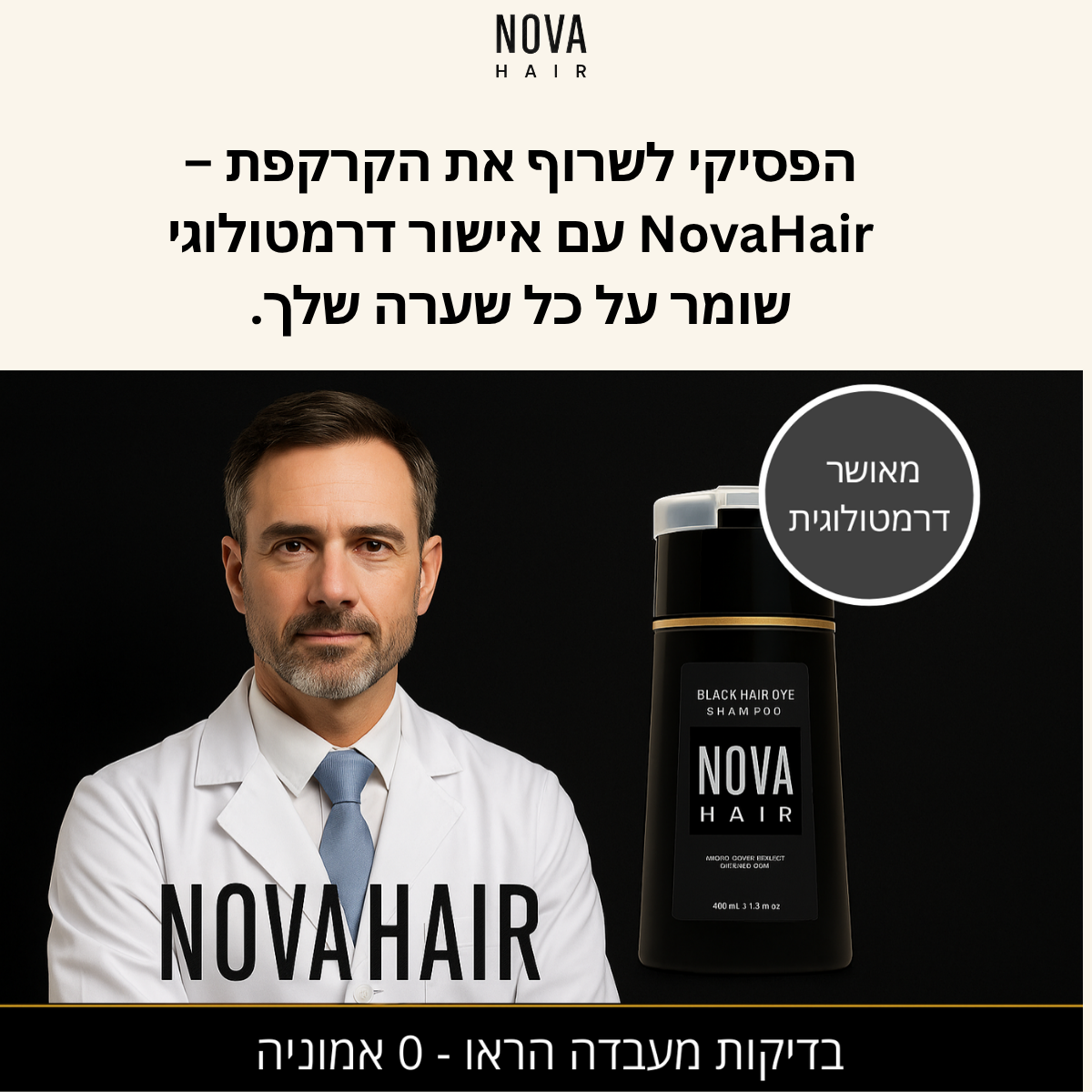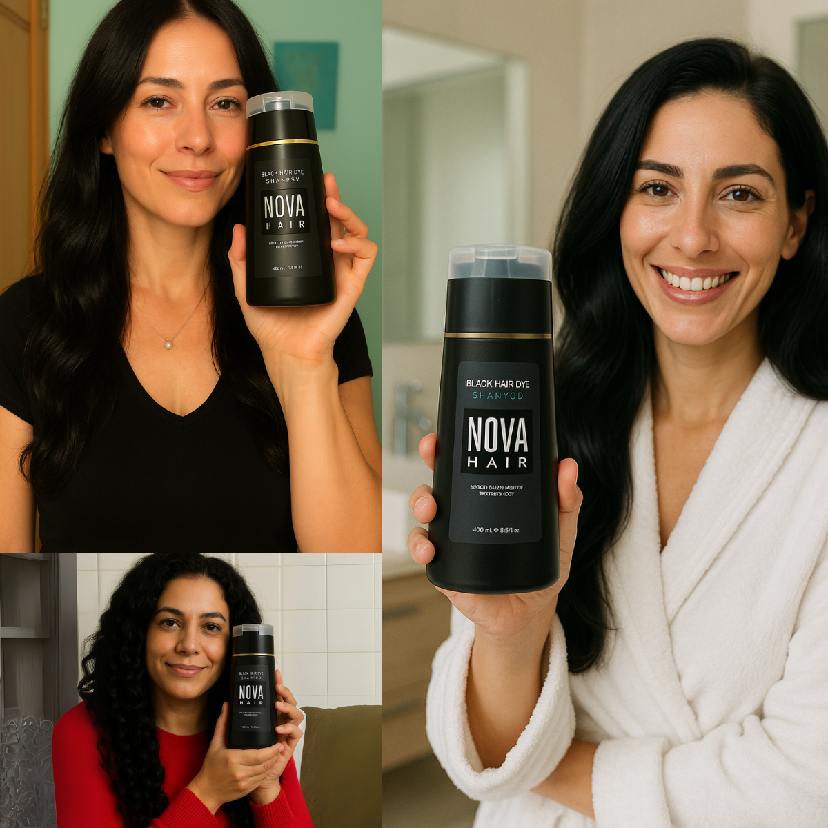 לא. בניגוד לצבעים רגילים, Nova Hair מעניק מראה טבעי לחלוטין, מבלי לייצר אפקט "פלסטיק" או שחור מלאכותי. התוצאה נראית כאילו לא צבעת כלל את השיער.